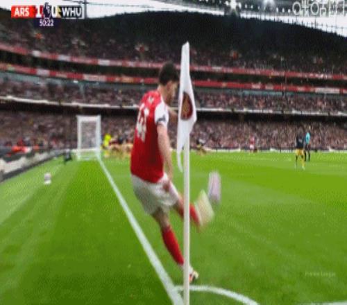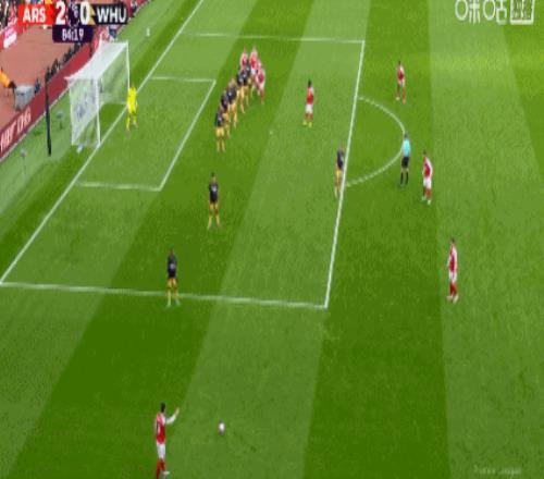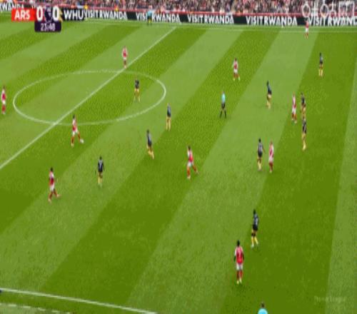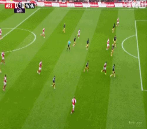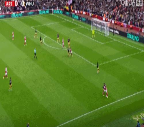 第38分鐘,賴斯禁區(qū)內(nèi)推射破舊主,隨后選擇不慶祝,阿森納1-0西漢姆聯(lián)
