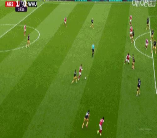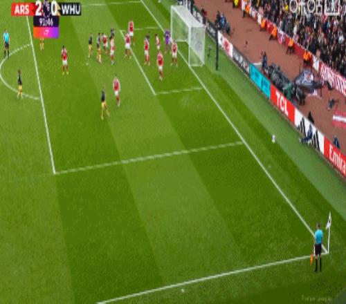 第32分鐘,薩卡右路傳中,阿森納禁區(qū)圍攻連續(xù)打門被擋