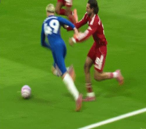 第39分鐘,場上出現(xiàn)爭議一幕,加納喬帶球至對手禁區(qū)內,索博斯洛伊對抗致其倒地,疑似有個推人動作,主裁判安東尼-泰勒示意沒有點球!