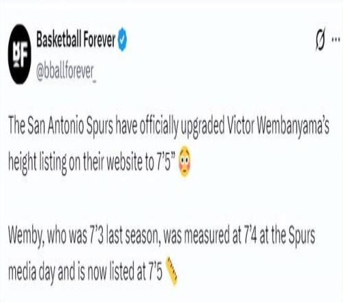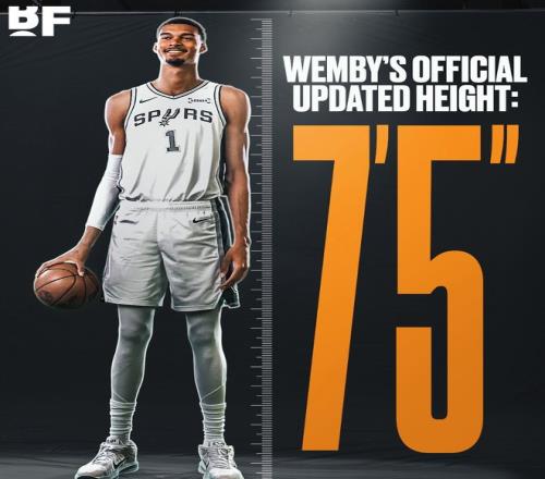 短短9天又長2厘米文班亞馬已2.26米美媒:NBA官網更新到7尺5