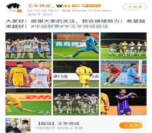 其實(shí)在擔(dān)任門將期間,王年將成就因?yàn)?84cm的身高和頗具青春感的面孔收獲了一群粉絲,極目新聞?dòng)浾哧P(guān)注到,其微博目前能看到的最早消息發(fā)布于2022年11月15日他登陸中超賽場后不久,彼時(shí)他便有一些粉絲的關(guān)注。