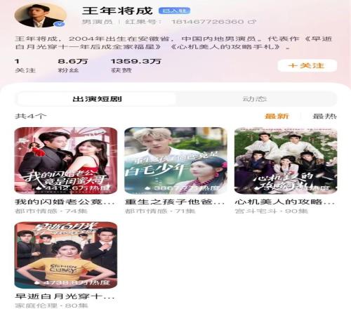 近期,前中超門將王年將成投身短劇賽道的消息引發(fā)不少人關(guān)注,極目新聞?dòng)浾咦⒁獾?,出生?004年的這位前中超門將,如今已在紅果短劇平臺擁有4部熱門劇集。