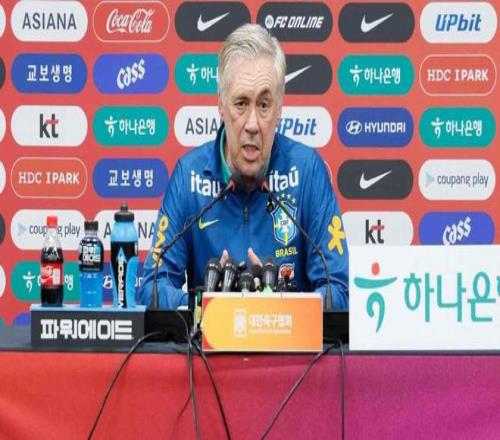 友誼賽對(duì)陣韓國(guó)賽前,巴西國(guó)家隊(duì)主帥安切洛蒂出席了新聞發(fā)布會(huì)。