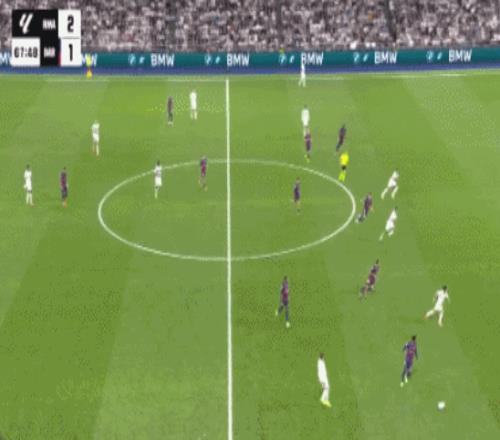 第43分鐘,皇馬2-1再度領(lǐng)先:維尼修斯突破下底傳中到后點(diǎn),米利唐頭球擺渡到門(mén)前,貝林厄姆推射入網(wǎng)。隨后不久,貝林厄姆打門(mén)被撲出,姆巴佩補(bǔ)射破門(mén),因越位在先被吹掉。