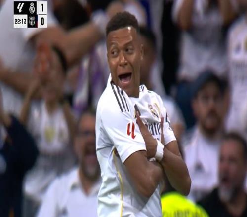 第22分鐘,貝林厄姆前場(chǎng)送出直塞球助攻,姆巴佩反越位殺入禁區(qū),單刀機(jī)會(huì)面對(duì)出擊的門(mén)將什琴斯尼,一腳推射入網(wǎng),幫助皇馬1-0先下一城。